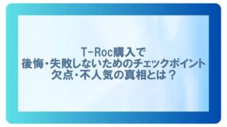 車のニュース/最新情報 T-Roc購入で後悔・失敗しないためのチェックポイント|欠点・不人気の真相とは? フォルクスワーゲンのT‑Roc(ティーロック)は、スタイリッシュなデザインとコンパクトSUVならではの取り回しの良さで注目を集めるモデルです。しかし実際に購入したユーザーの中には、「思っていたよりも内装がチープ」「騒音が気になる」など、欠点... 2025.09.02 車のニュース/最新情報